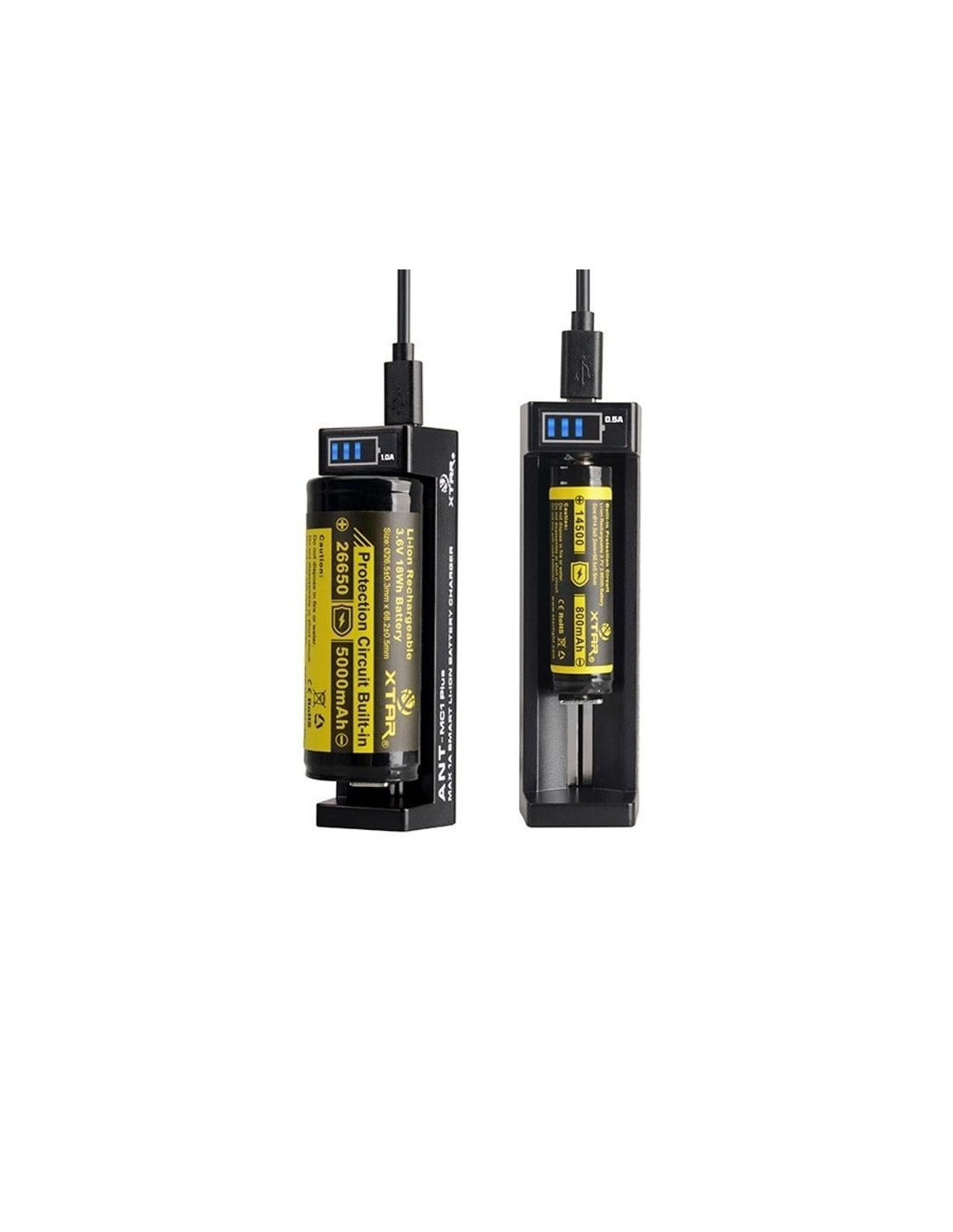 Le XTAR MC1 possède également un indicateur de charge et toutes les sécurités requises (Coupure en cas de surchauffe, protection contre les inversions de polarité...).